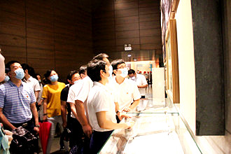 九時(shí)許,兩部30多名黨員同志們無(wú)畏暴雨帶來(lái)的險(xiǎn)阻,準(zhǔn)時(shí)集合在紅色革命教育基地——渡江戰(zhàn)役紀(jì)念館。緬懷革命先烈、傳承紅色基因,在何家樂(lè)書(shū)記與交行安徽省分行第38黨支部書(shū)記、交行黃山路中心支行行長(zhǎng)宋玲子書(shū)記的帶領(lǐng)下,兩部同志來(lái)到了渡江戰(zhàn)役紀(jì)念館學(xué)習(xí)參觀,一同回顧歷史,重溫誓詞,立足當(dāng)下,展望未來(lái)。